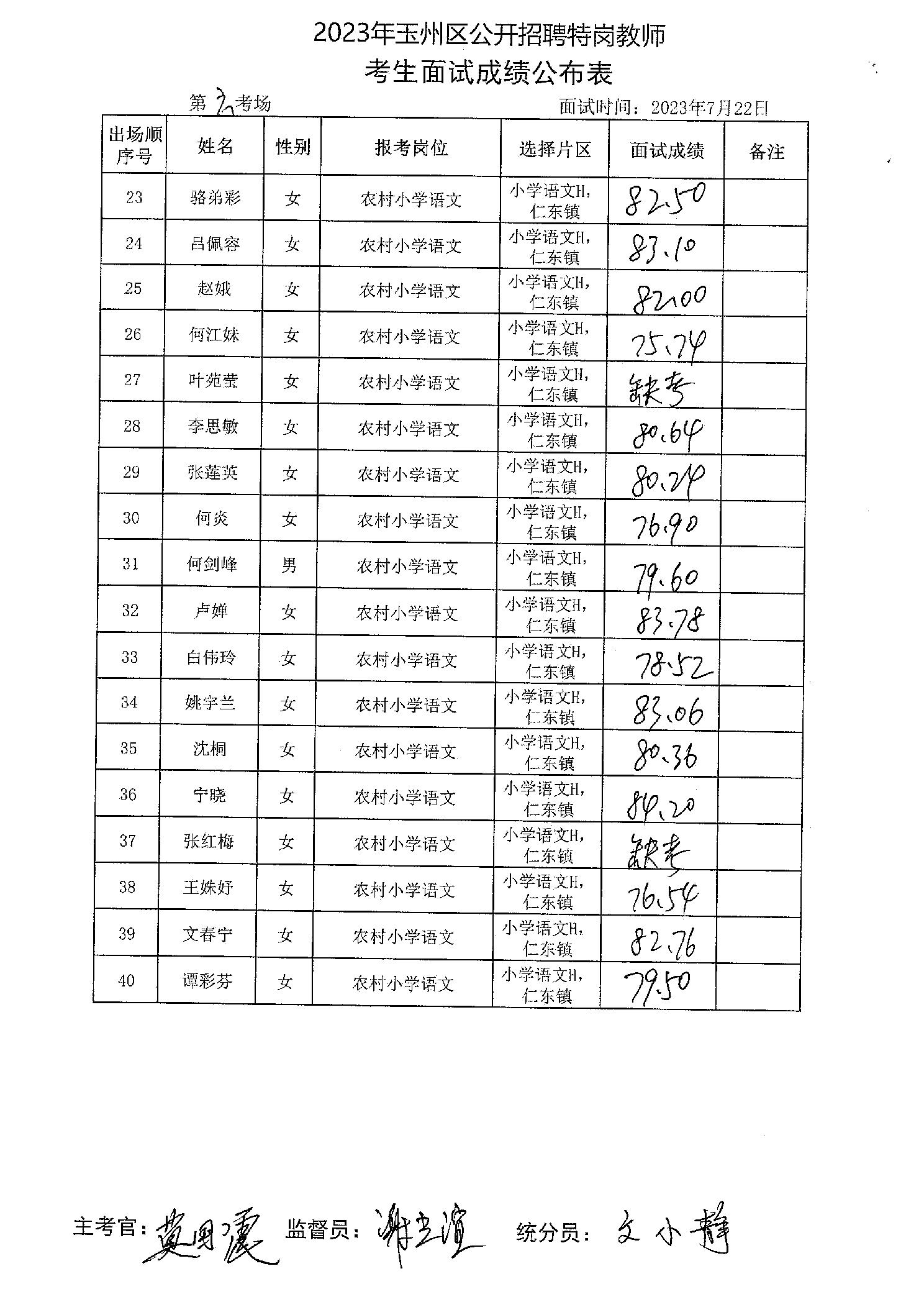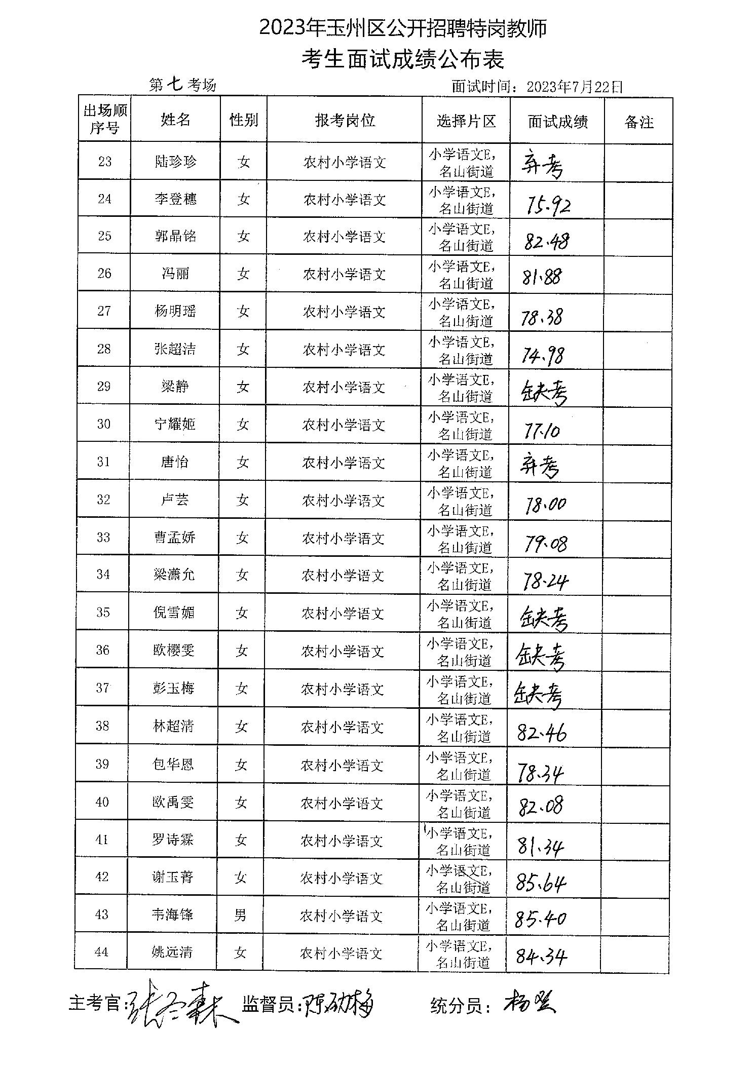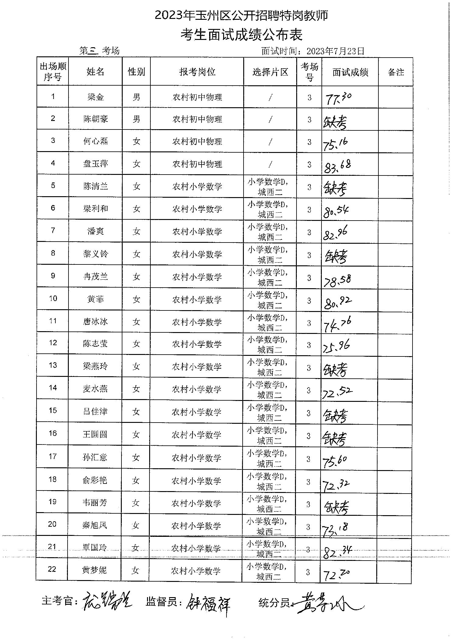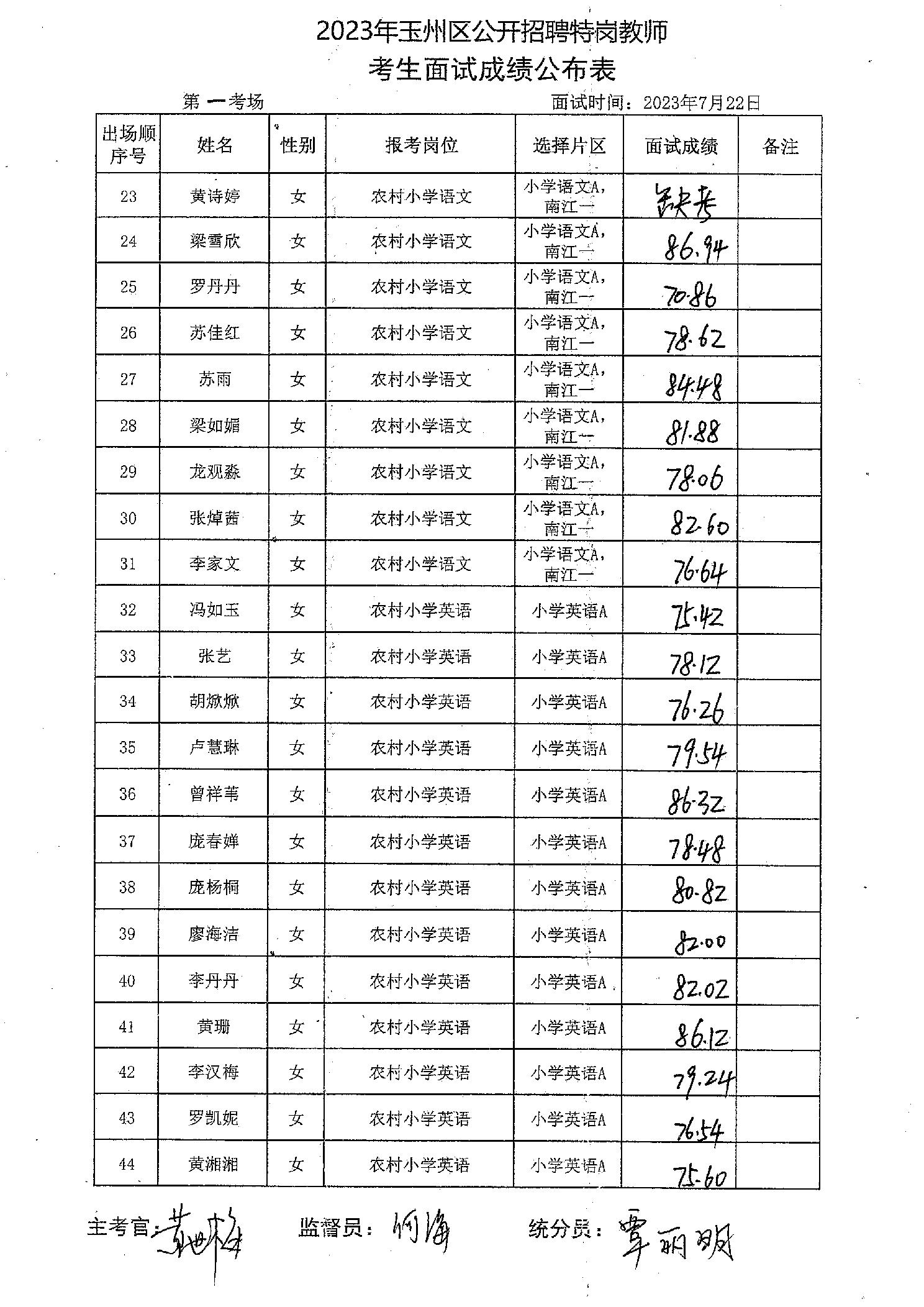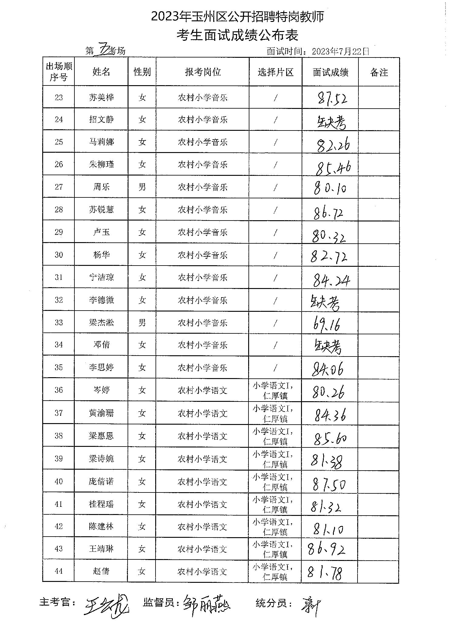 原文標題:2023年玉州區(qū)公開招聘特崗教師考生面試成績