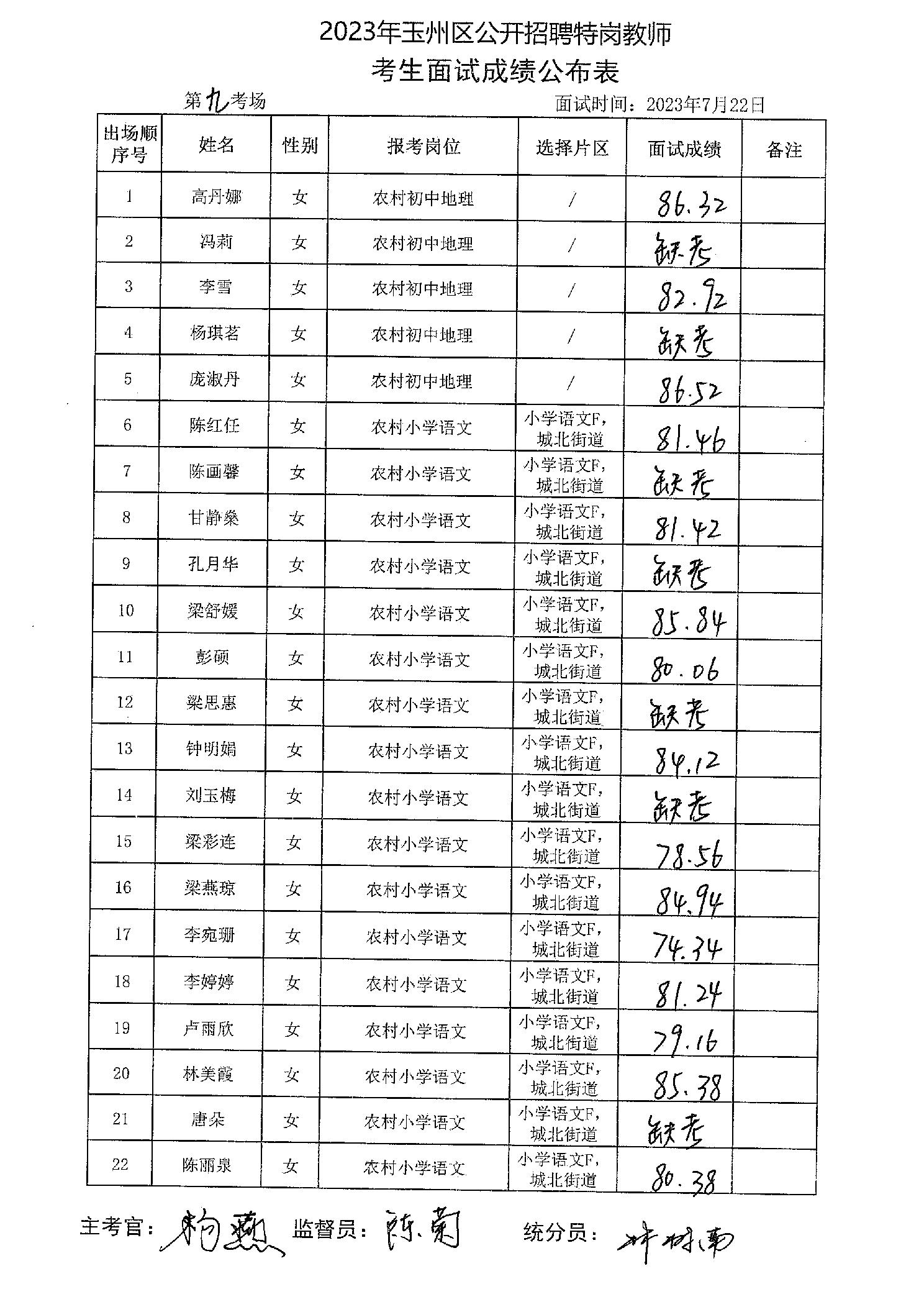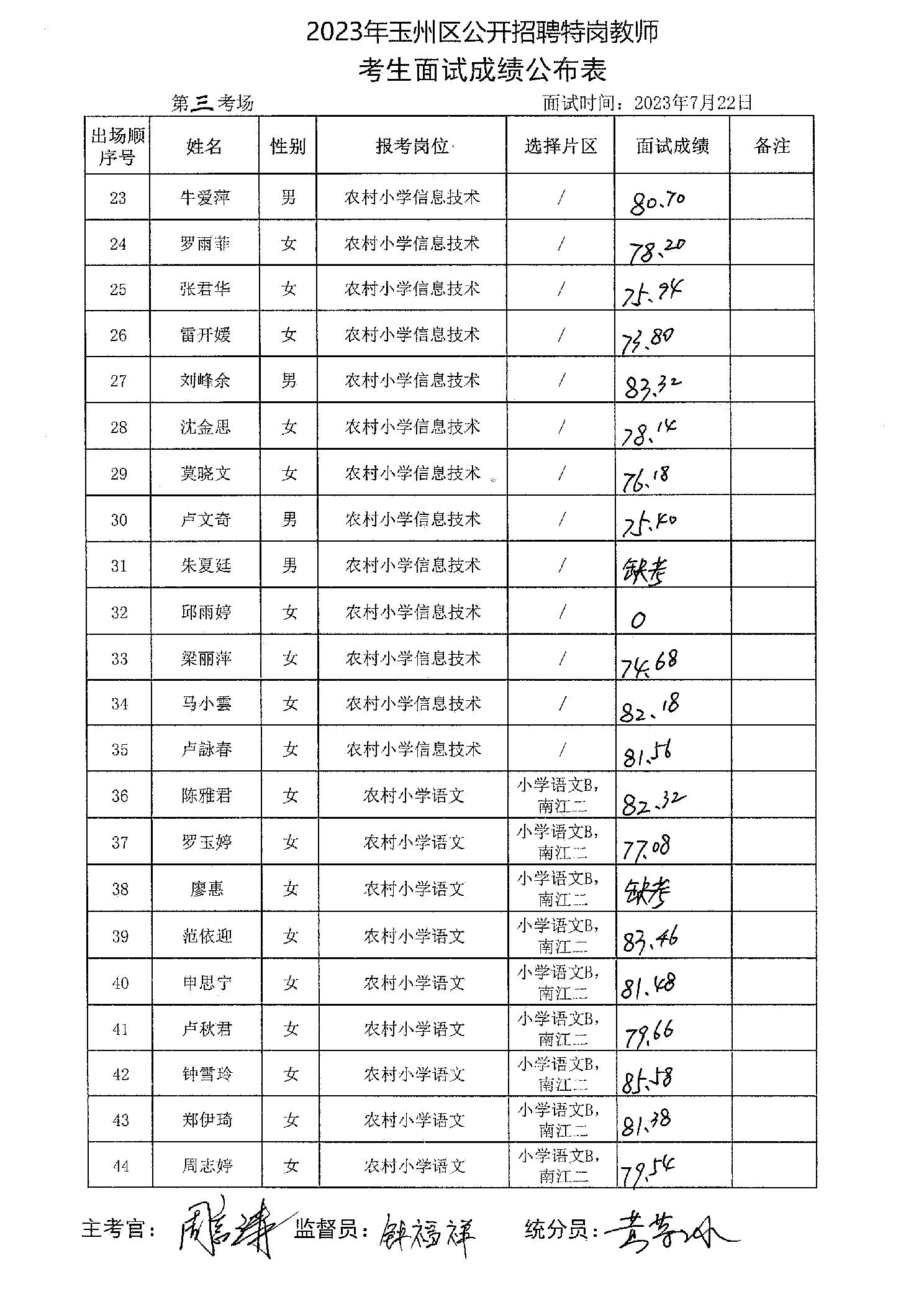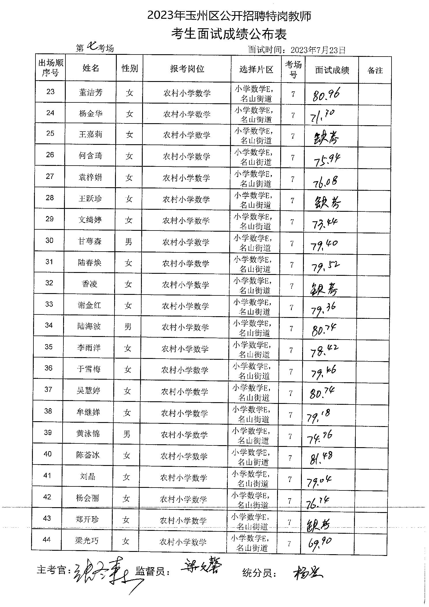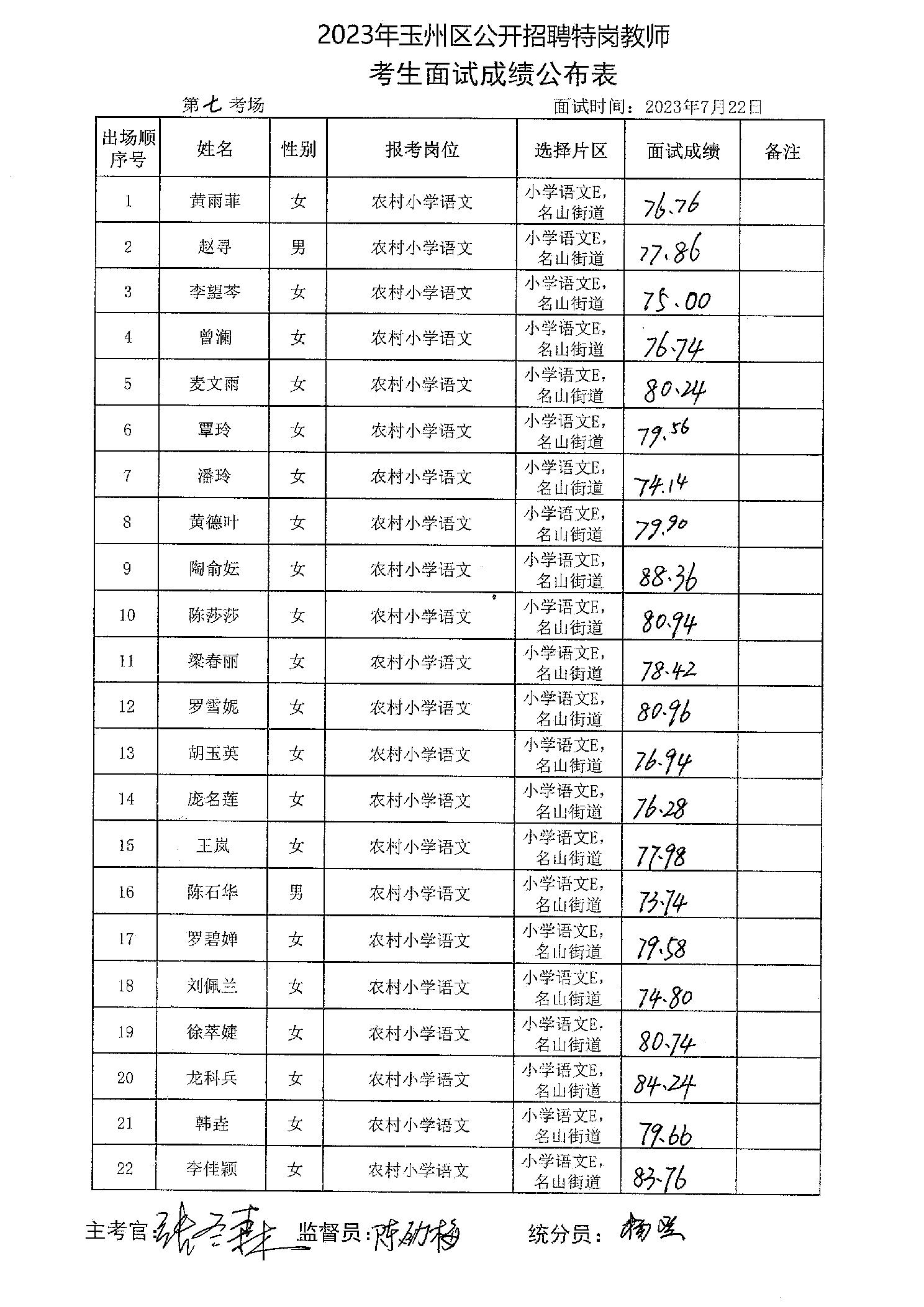 原文標題:2023年玉州區(qū)公開招聘特崗教師考生面試成績