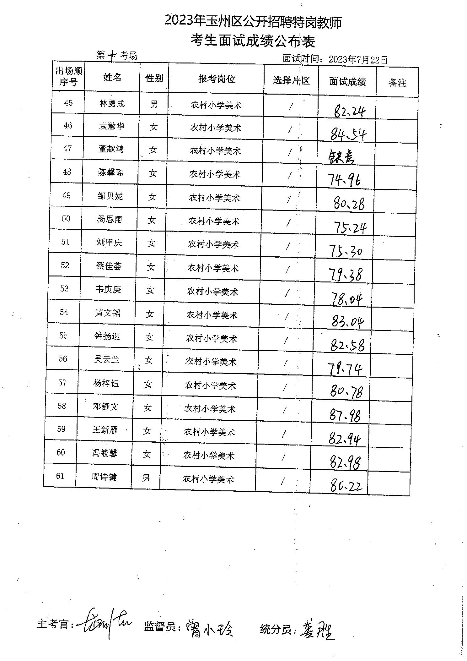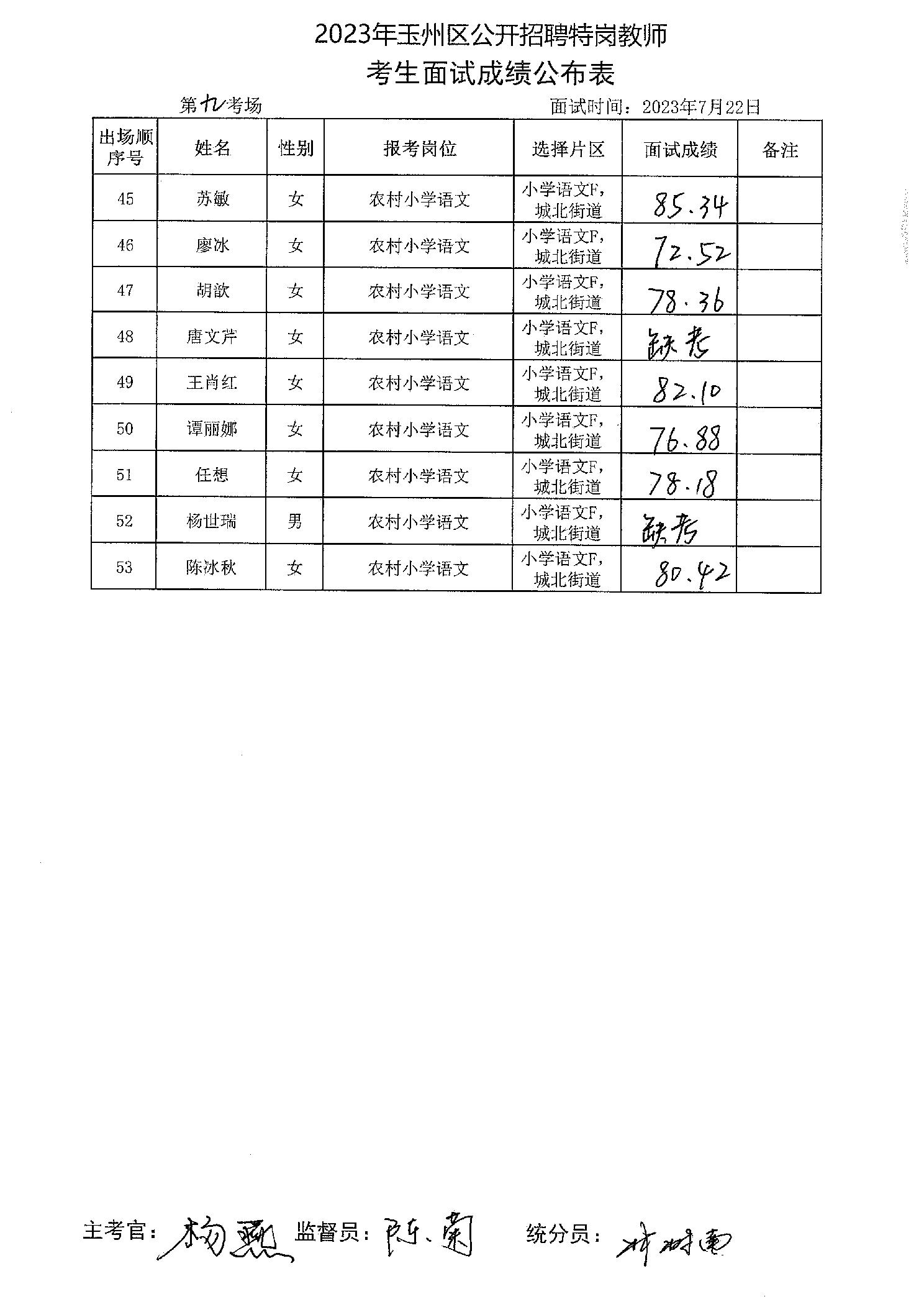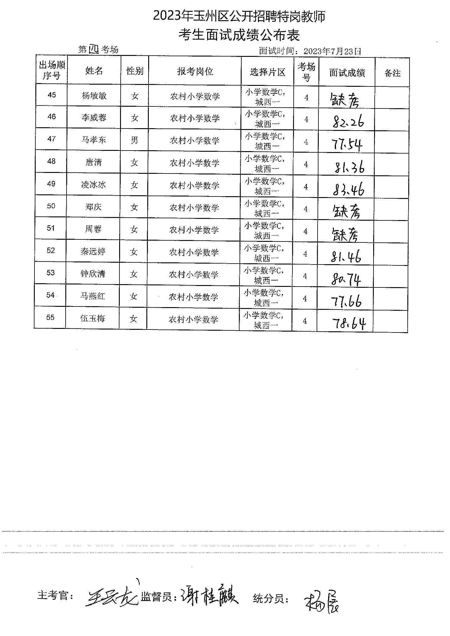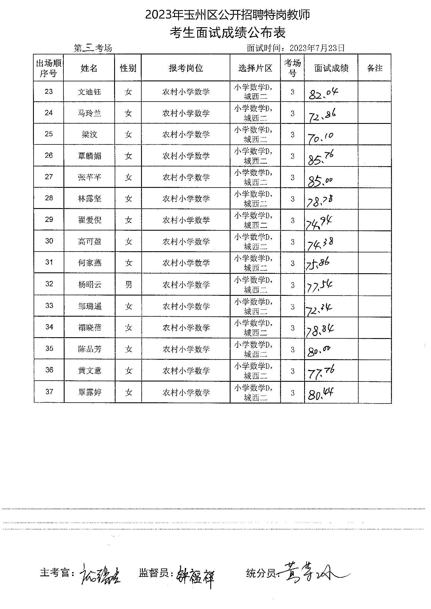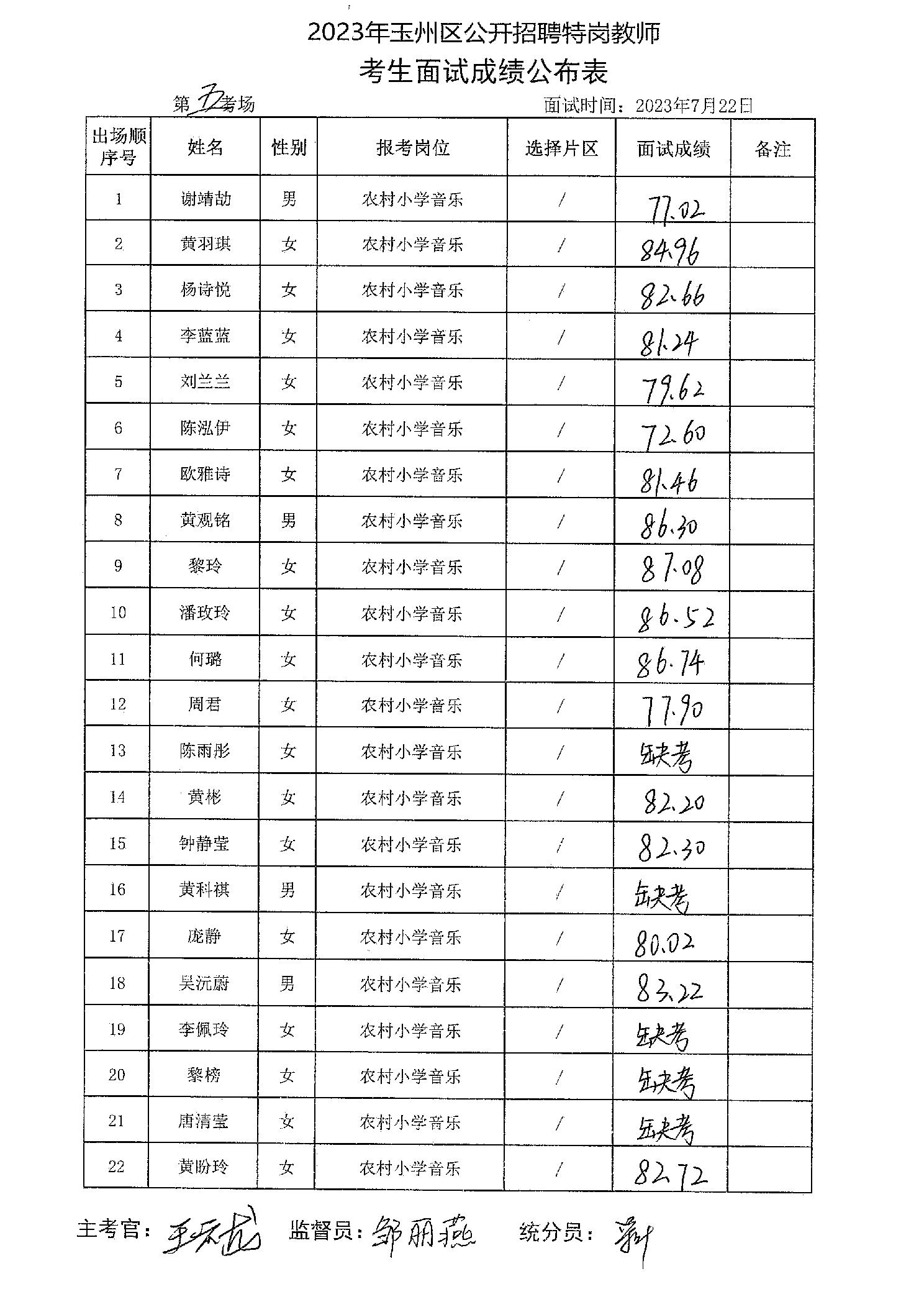 原文標題:2023年玉州區(qū)公開招聘特崗教師考生面試成績