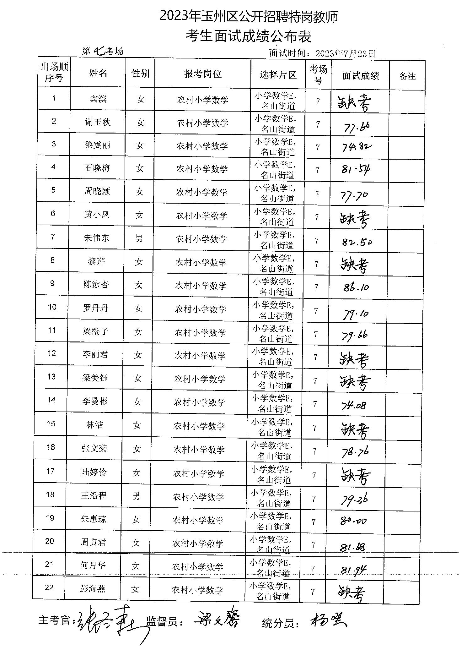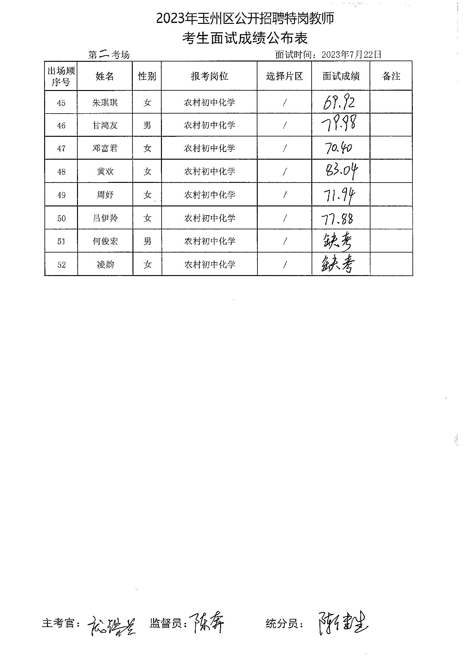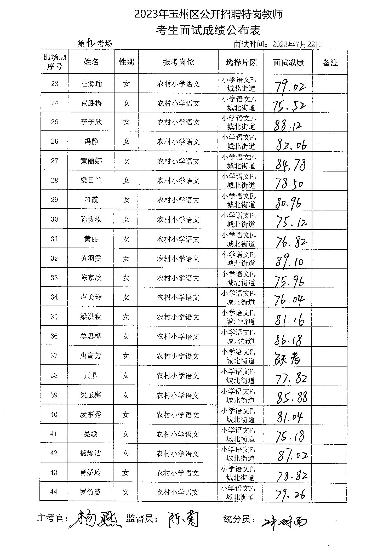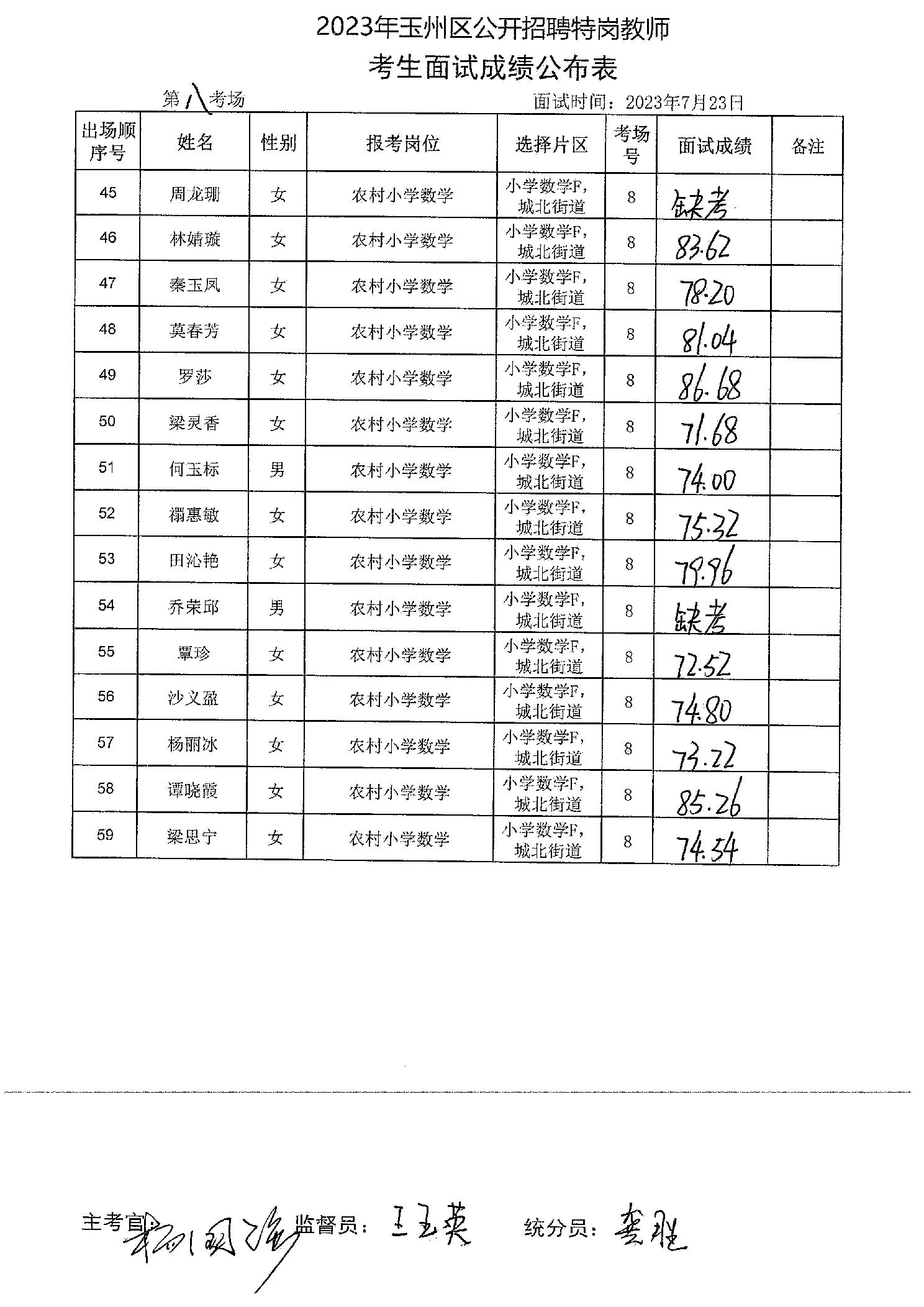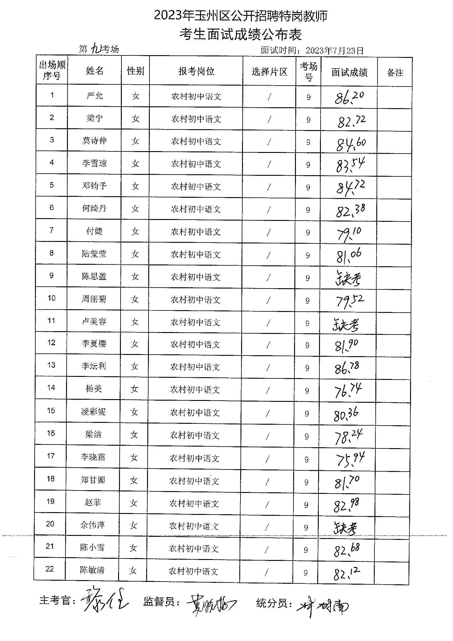 原文標題:2023年玉州區(qū)公開招聘特崗教師考生面試成績