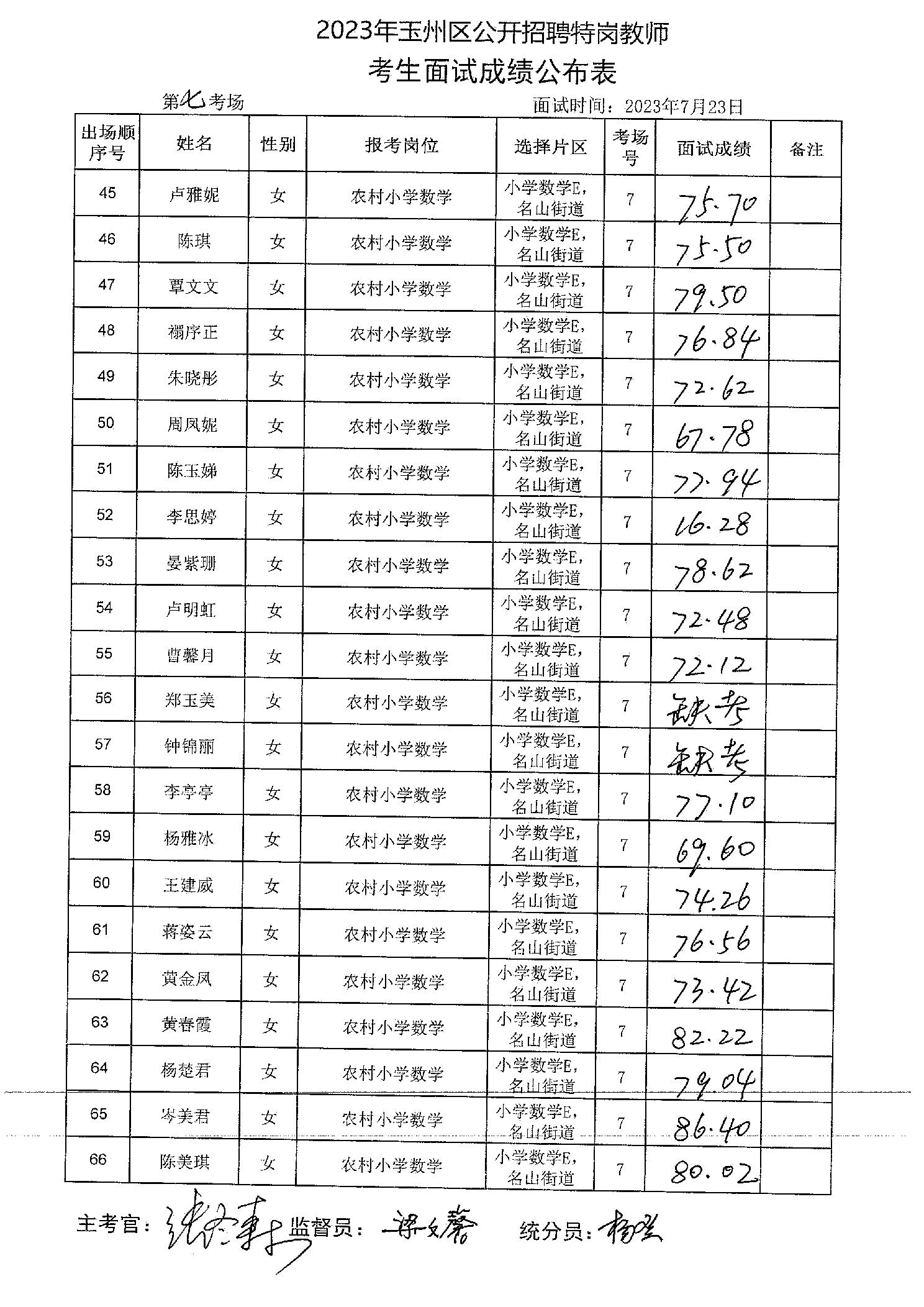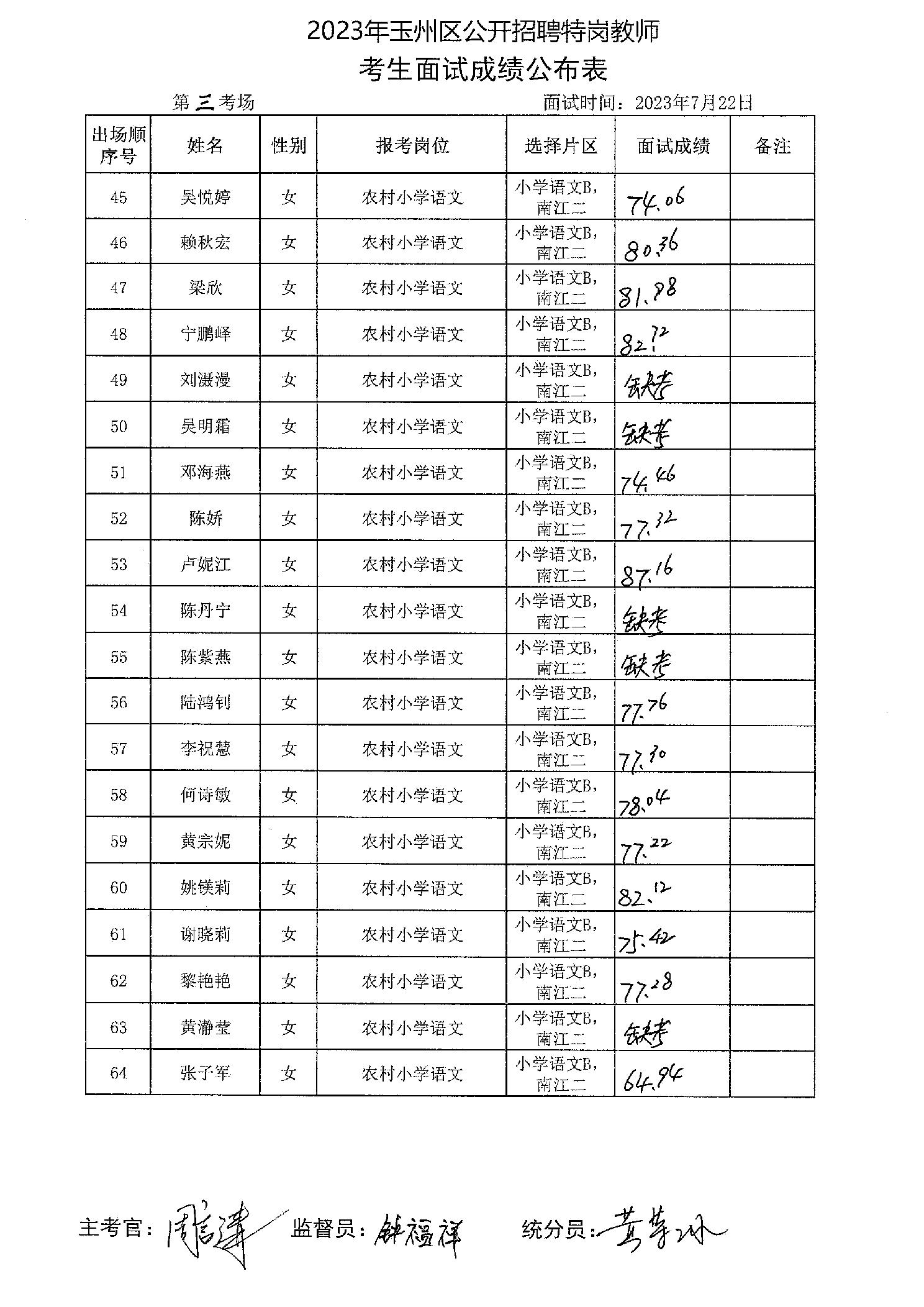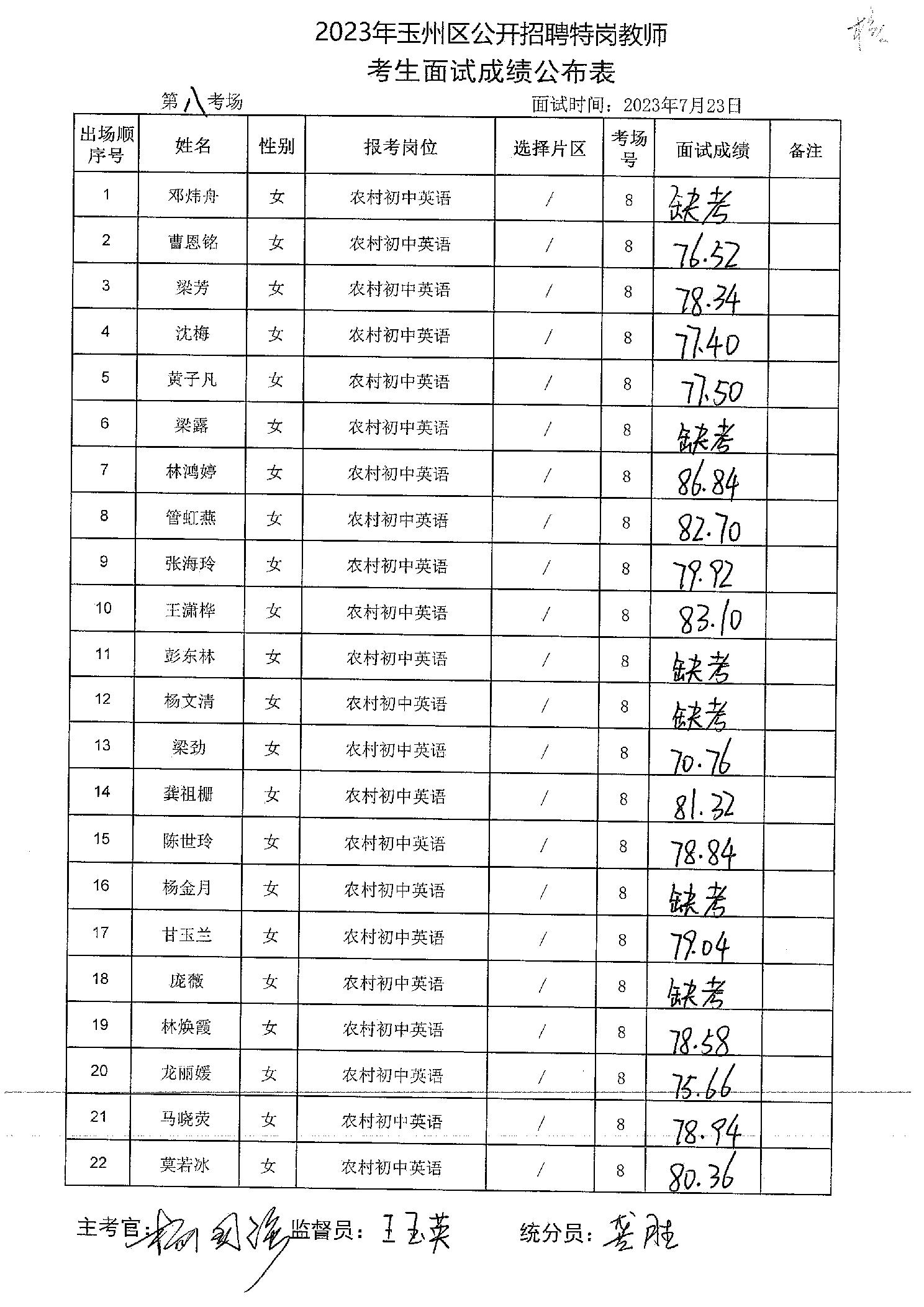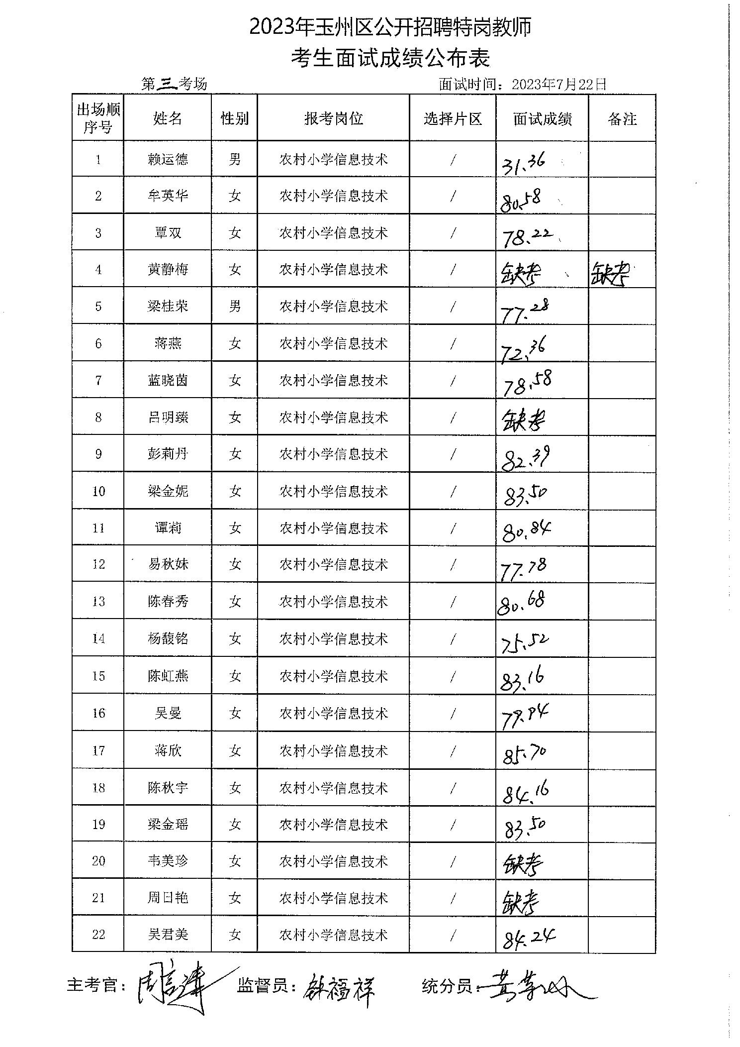 原文標題:2023年玉州區(qū)公開招聘特崗教師考生面試成績