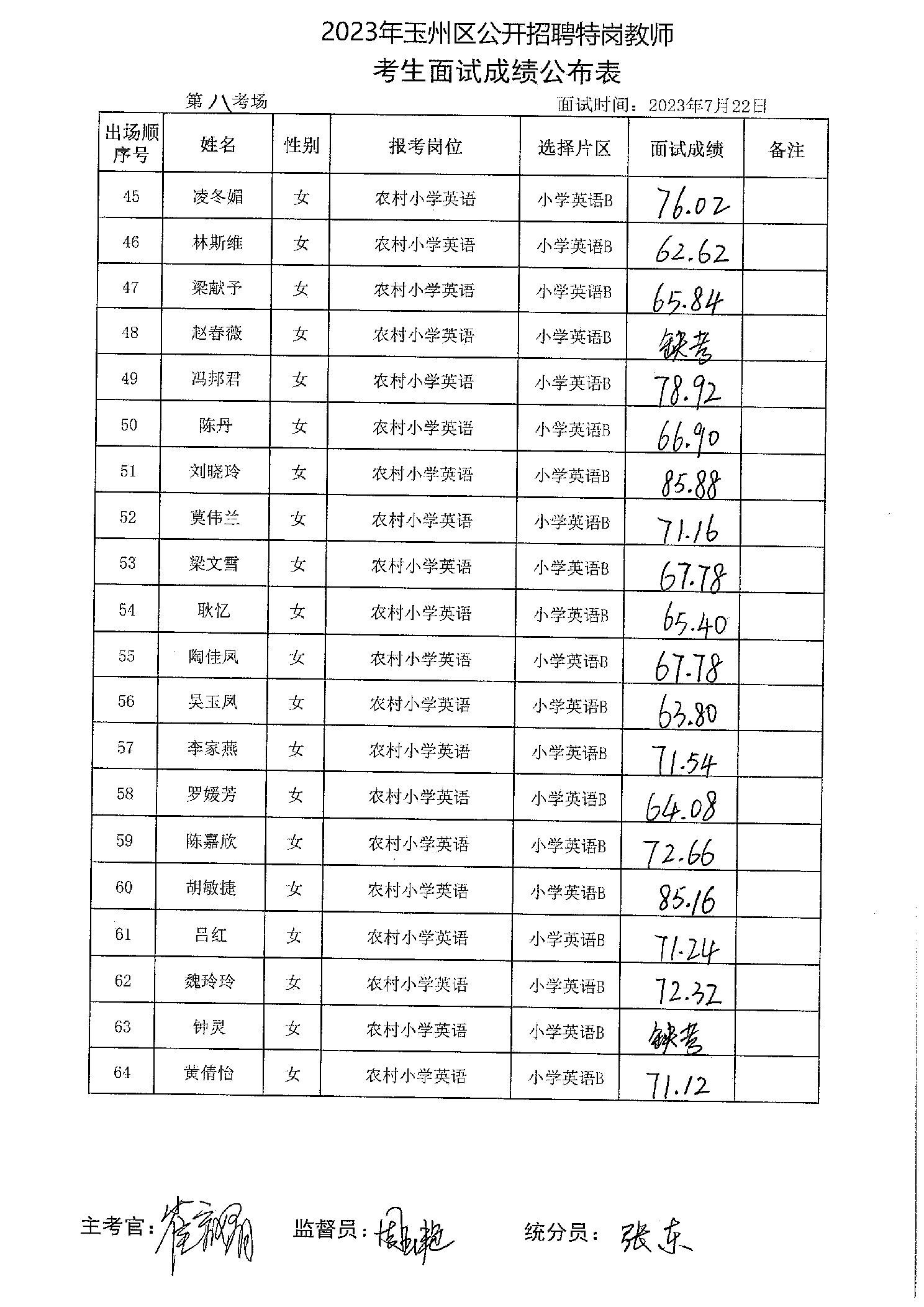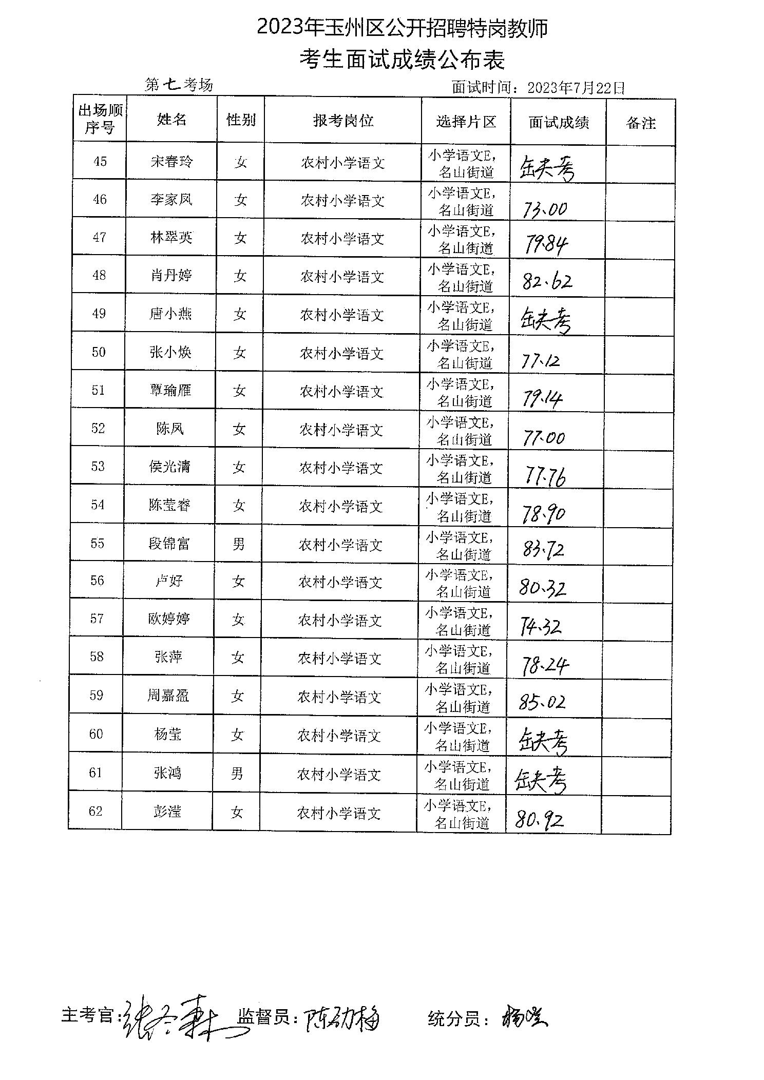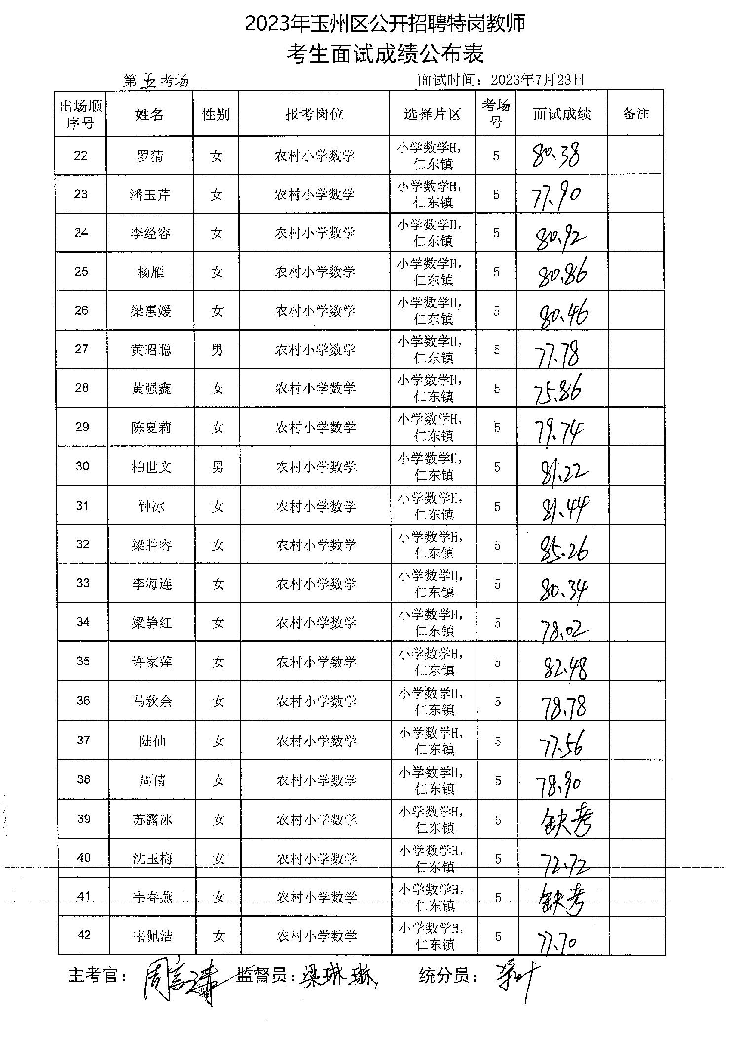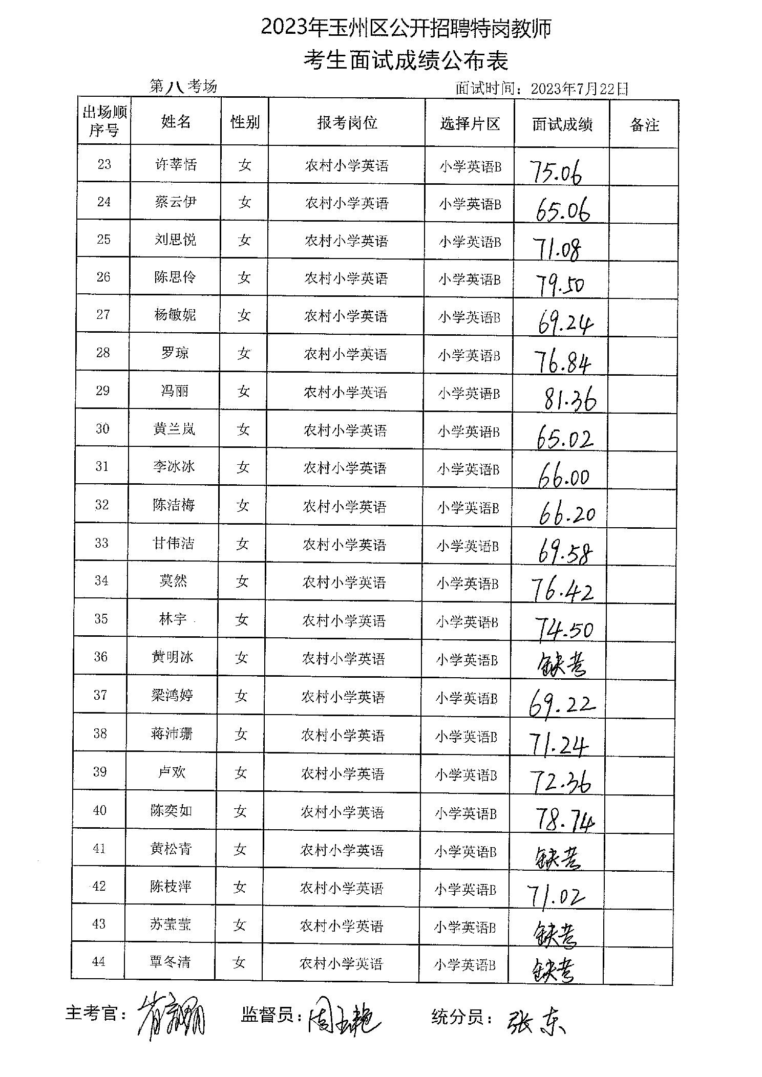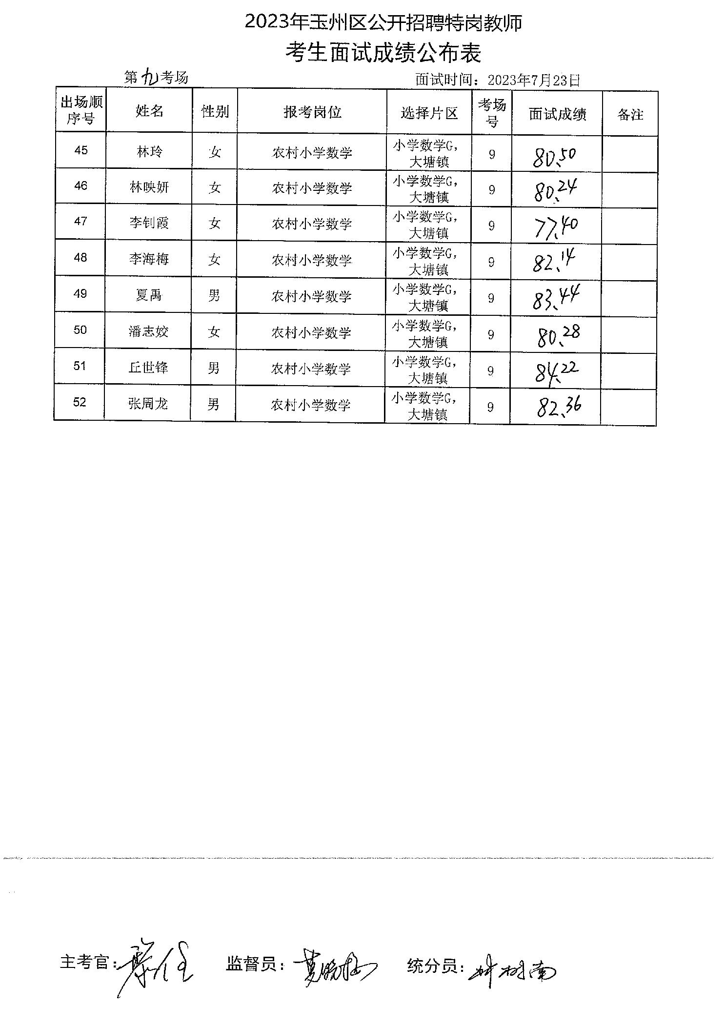 原文標題:2023年玉州區(qū)公開招聘特崗教師考生面試成績