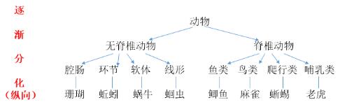 逐漸分化原則可以理解為下位學(xué)習(xí)的派生類屬,新學(xué)習(xí)的內(nèi)容是原有舊知識(shí)的例證,如下面的縱向結(jié)構(gòu)圖,學(xué)生已經(jīng)從最大的“動(dòng)物”概念一直往下學(xué)到“鳥類”的概念,老師又新介紹了“麻雀”的例子,這就是派生類屬。