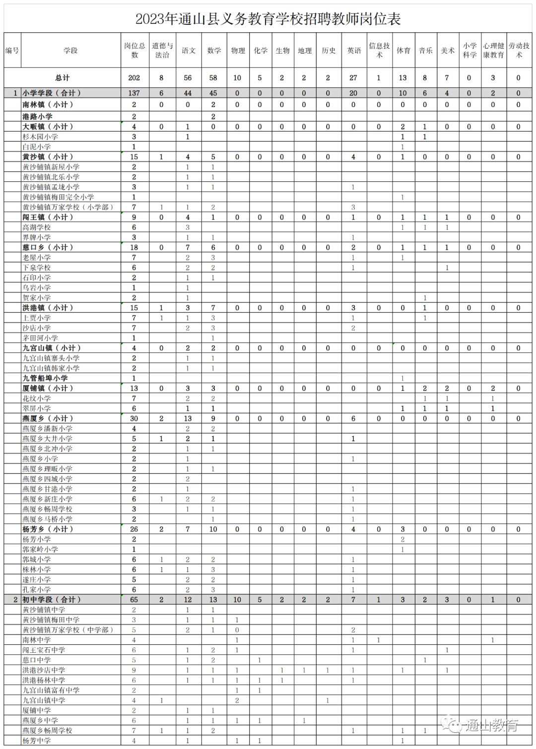 2.2023年通山縣義務(wù)教育學(xué)校、幼兒園招聘教師崗位表