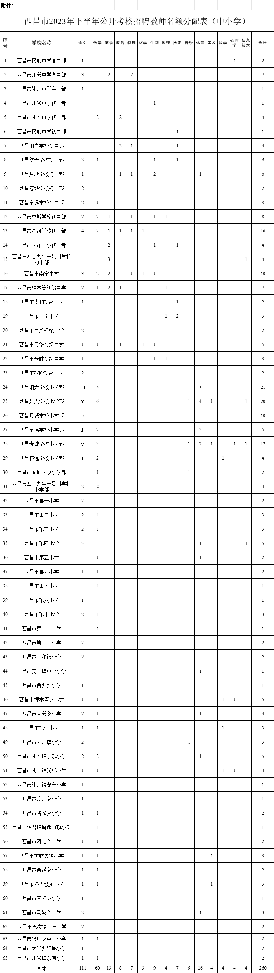 1.西昌市2023年下半年公開(kāi)考核招聘教師名額分配表(中小學(xué)) |