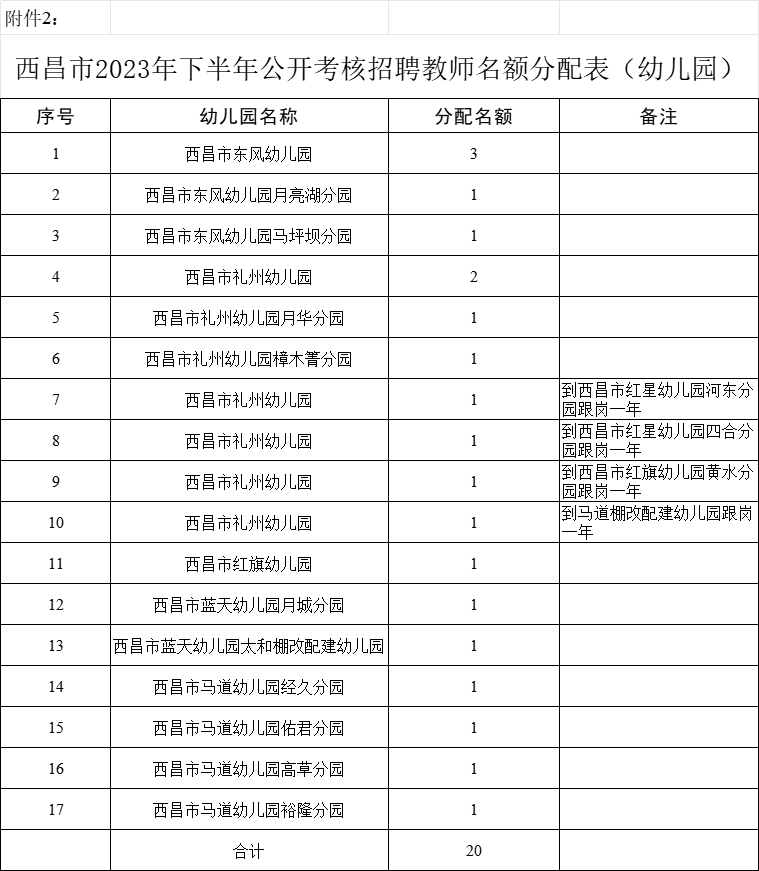 2.西昌市2023年下半年公開(kāi)考核招聘教師名額分配表(幼兒園) |