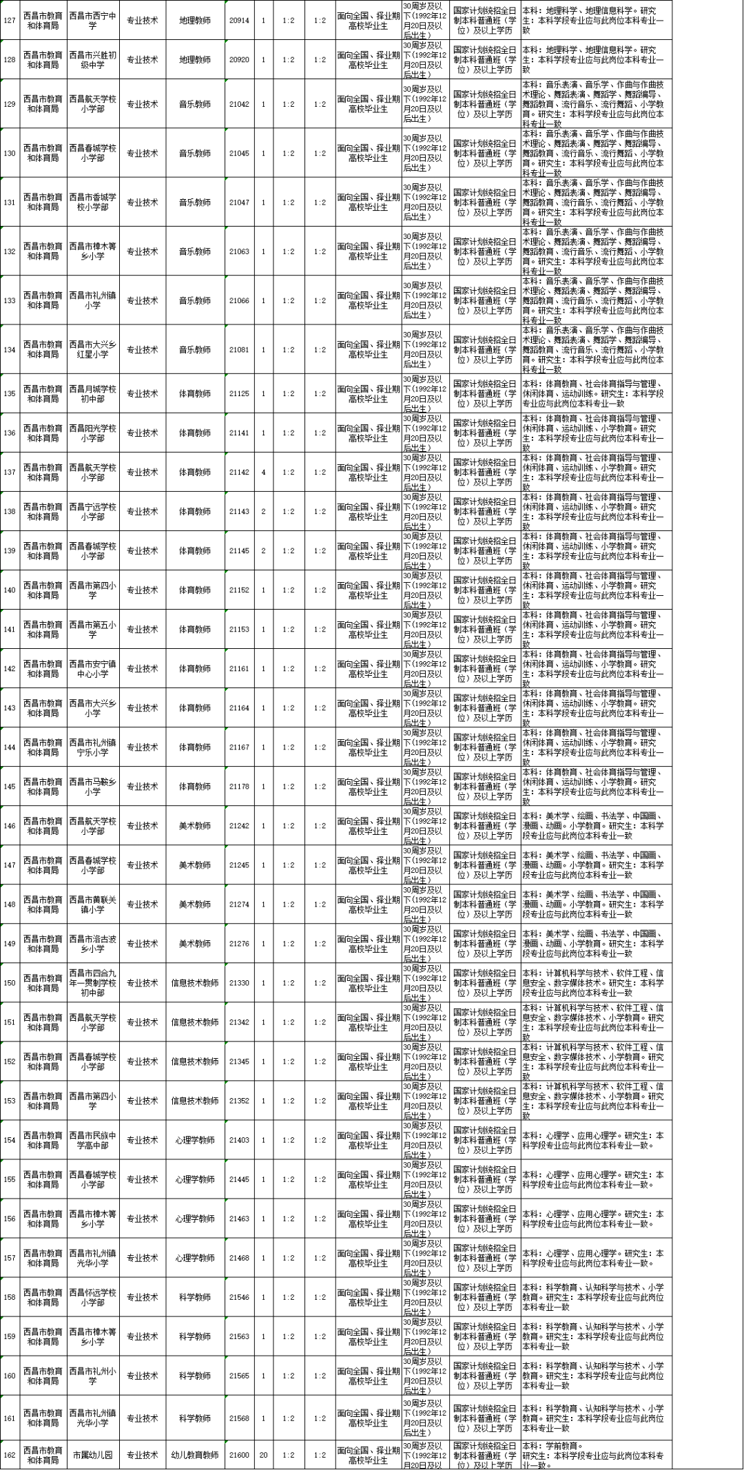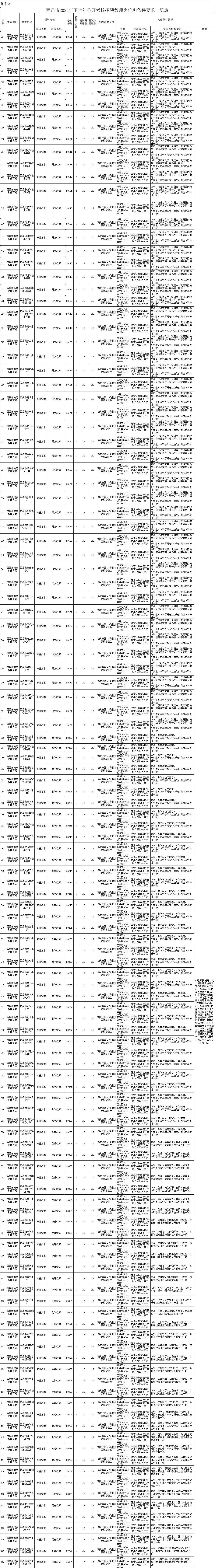 4.西昌市2023年下半年公開(kāi)考核招聘教師崗位和條件要求一覽表2 |