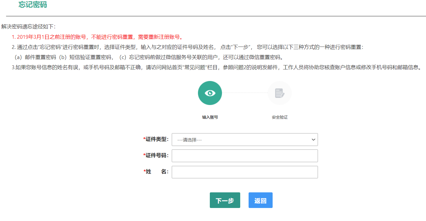 注意:在注冊(cè)或重置密碼過(guò)程中遇到的問(wèn)題,可參考網(wǎng)站首頁(yè)“常見(jiàn)問(wèn)題”欄目相關(guān)說(shuō)明處理。
