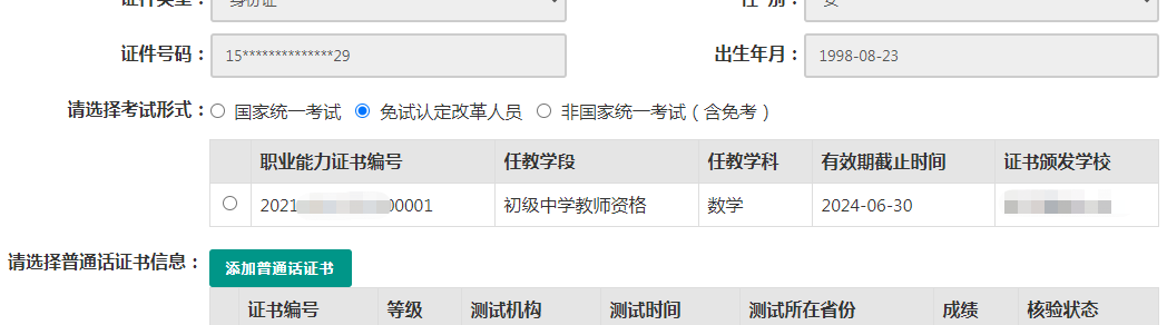 師范生教師職業(yè)能力證書(shū):只有2021年及以后實(shí)施免試認(rèn)定改革的高等學(xué)校,且考核合格并取得《師范生教師職業(yè)能力證書(shū)》的教育類(lèi)研究生和師范生,才會(huì)自動(dòng)同步該證書(shū)上的相關(guān)信息。