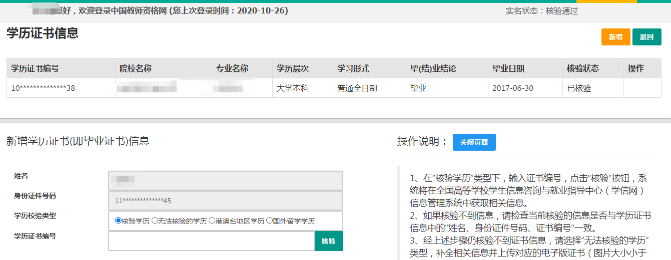 學(xué)歷證書(shū)信息:根據(jù)申請(qǐng)人所取得的學(xué)歷證書(shū)選擇學(xué)歷的校驗(yàn)類(lèi)型。