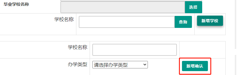 添加學(xué)歷證書(shū)時(shí),如您所畢業(yè)的學(xué)校不在可選范圍之內(nèi)(查詢(xún)不到),您可點(diǎn)擊“新增學(xué)校”按鈕,填寫(xiě)相關(guān)信息,而后點(diǎn)擊“新增確認(rèn)”即可。