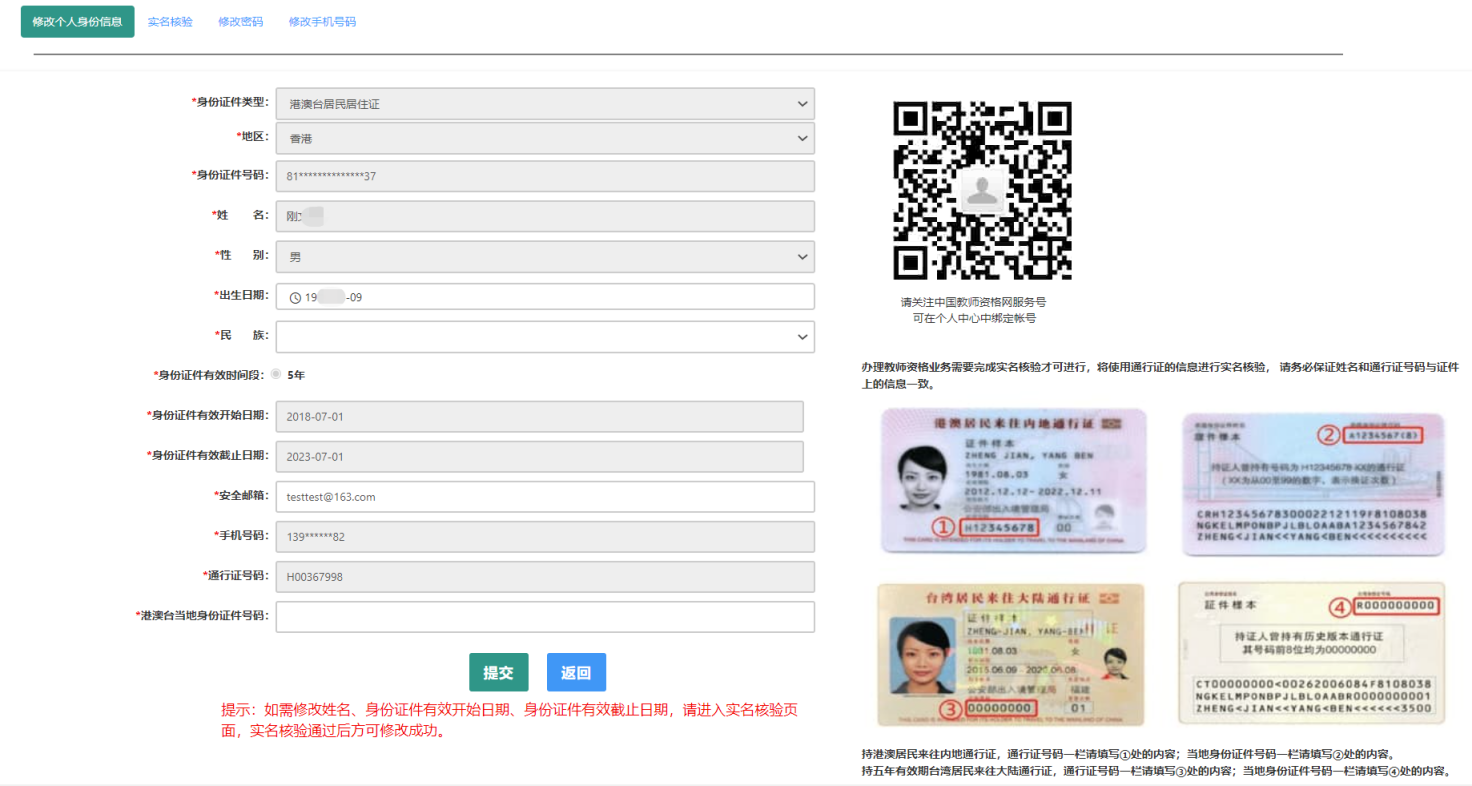 本功能用于修改個(gè)人身份信息、實(shí)名核驗(yàn)、修改密碼、修改手機(jī)號(hào)碼等。
