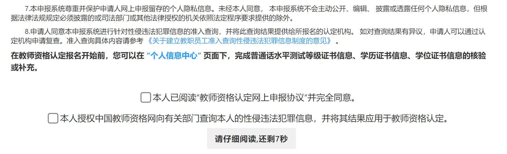 特別提示:申請(qǐng)人需提前下載安裝學(xué)信網(wǎng)APP,在報(bào)名時(shí)掃碼授權(quán),并在報(bào)名認(rèn)定系統(tǒng)上點(diǎn)擊“已完成”按鈕,完成學(xué)歷學(xué)籍信息核驗(yàn),具體的申報(bào)操作步驟,申請(qǐng)人查閱《教師資格認(rèn)定申請(qǐng)人使用手冊(cè)》(附件1)。