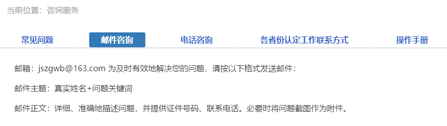 如果仍不能解決問(wèn)題,請(qǐng)按“郵件咨詢(xún)”中的格式發(fā)送郵件或撥打咨詢(xún)電話,聯(lián)系網(wǎng)站工作人員解決問(wèn)題。