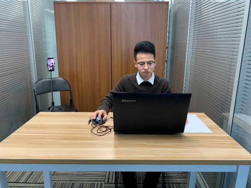 (4)考試開始前,考生需要先登錄移動端“智考通”,用前置攝像頭360度環(huán)繞拍攝考試環(huán)境,隨后將移動設(shè)備固定在能夠拍攝到考生全身(含側(cè)面)、考試桌面、完整的考試設(shè)備(電腦屏幕和鍵盤等)、考生雙手動作(考生行為)及考生周圍環(huán)境的位置上繼續(xù)拍攝考試全程(詳見說明書中《智考通操作手冊》《智考云在線考試規(guī)范》)。請考生注意,視頻拍攝角度不得存在盲區(qū),不得無故中斷視頻錄制,考試視頻數(shù)據(jù)不得缺失,不得出現(xiàn)影響考務(wù)人員判斷本場考試有效性等情況,否則將影響成績的有效性,由考生自行承擔(dān)后果。