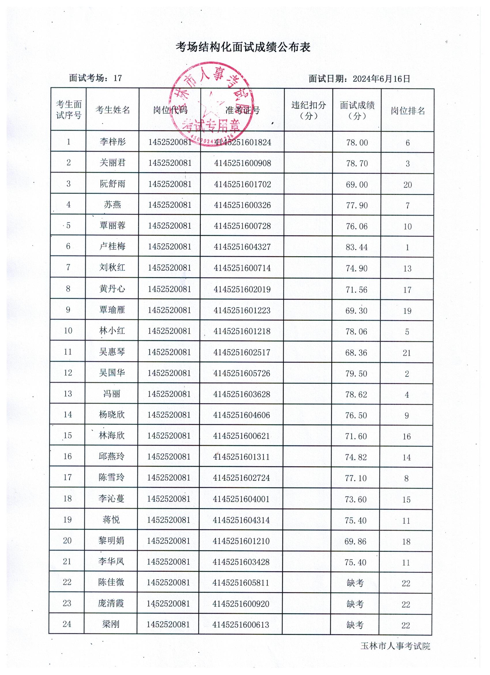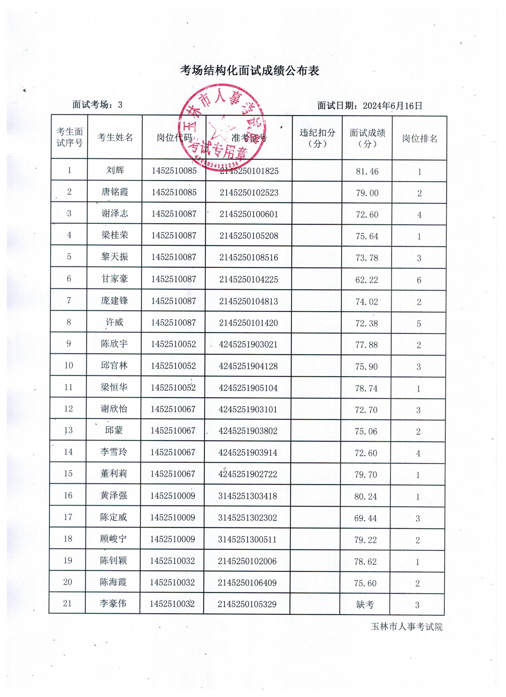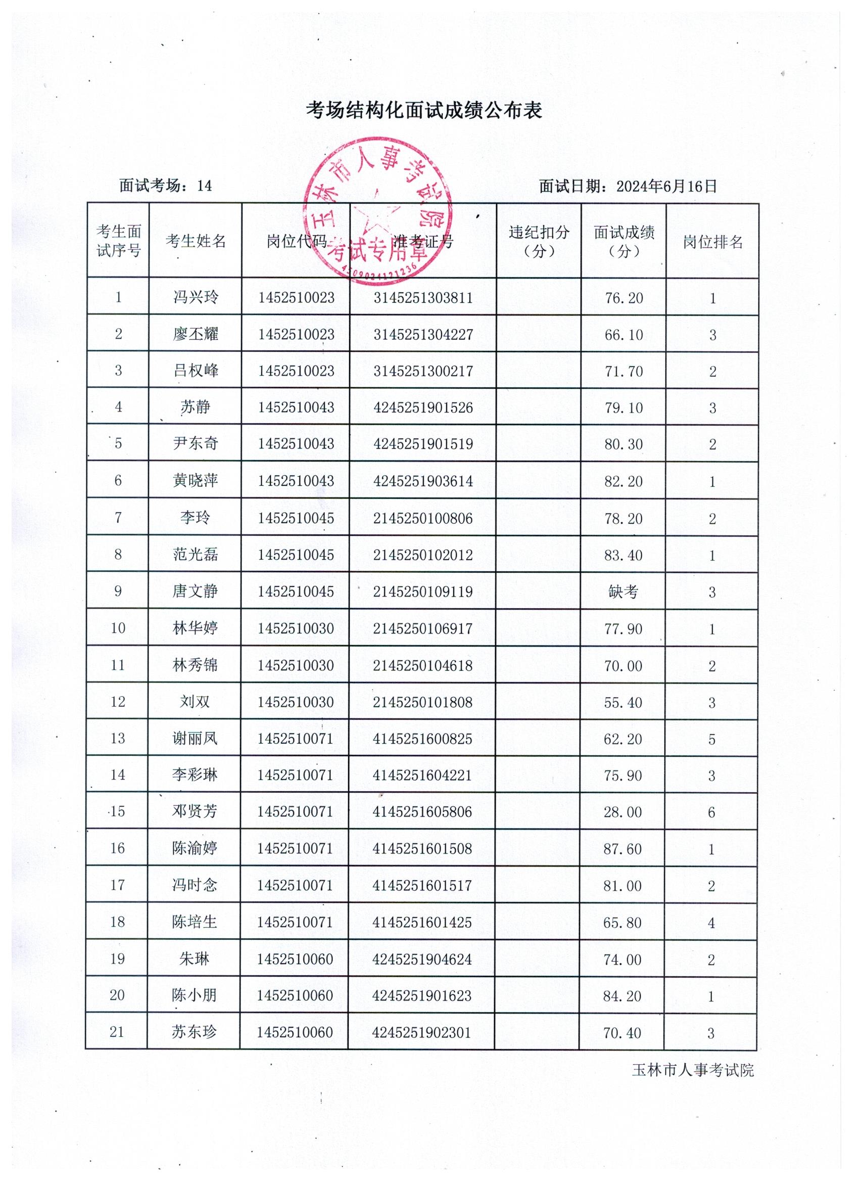 原文標(biāo)題:2024年玉林市直(含玉州區(qū)、福綿區(qū)、玉東新區(qū))事業(yè)單位公開招聘人員面試成績公布(6月16日)