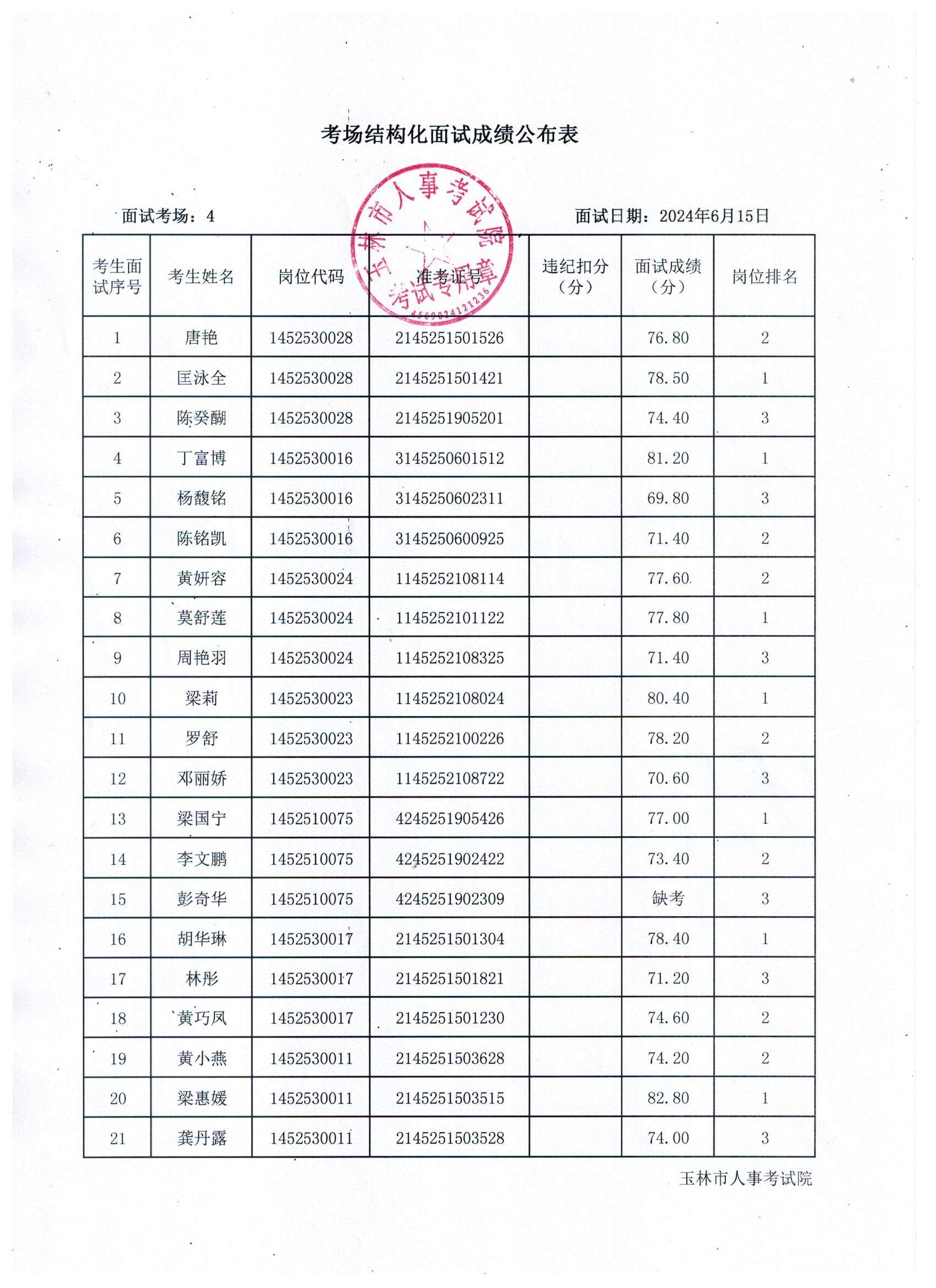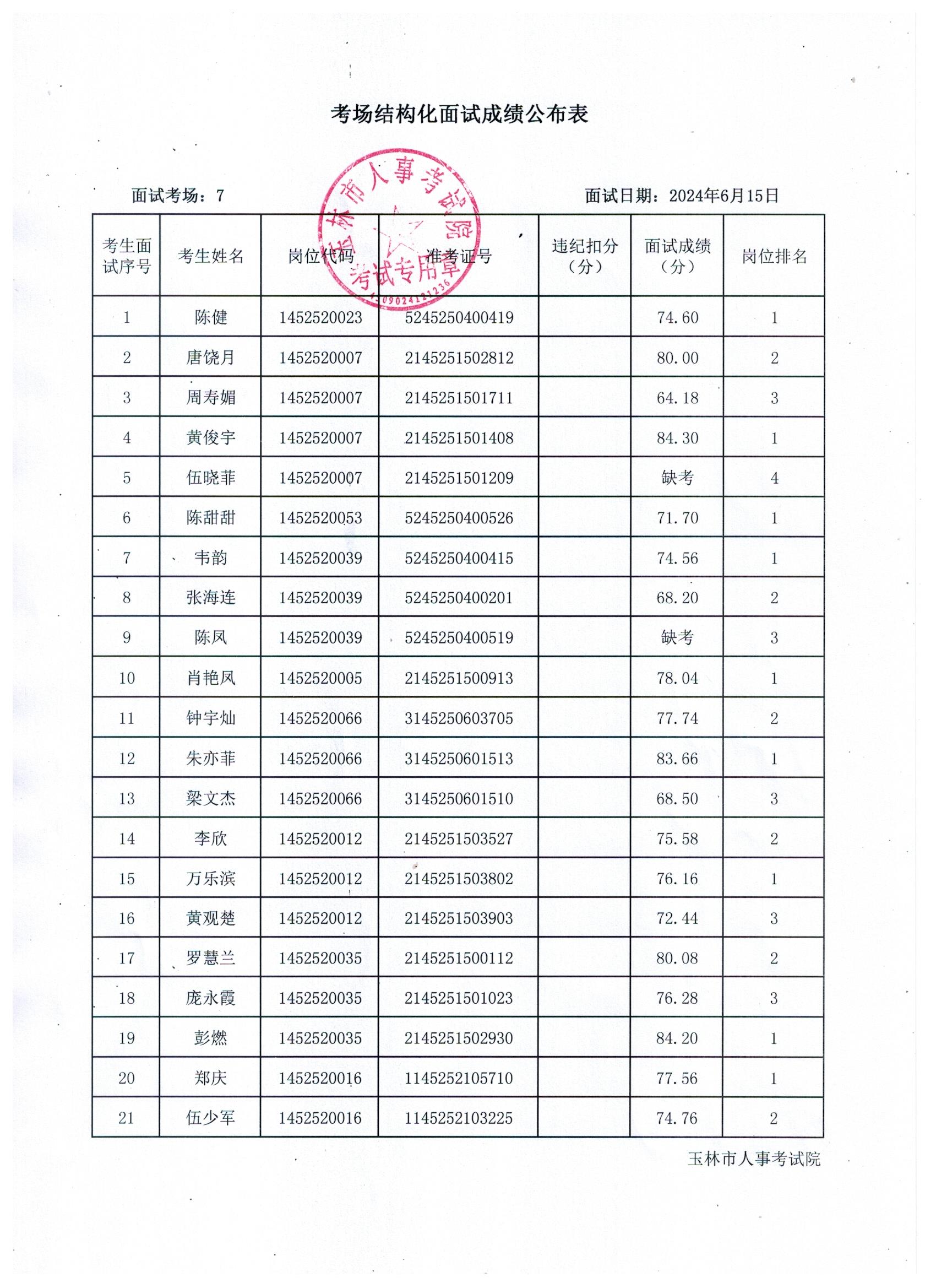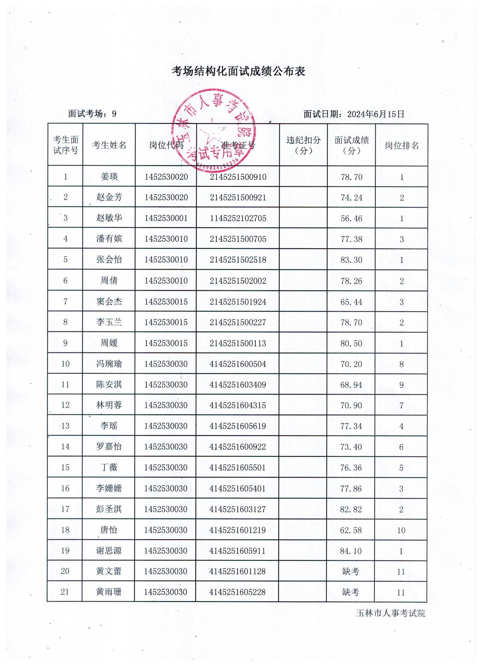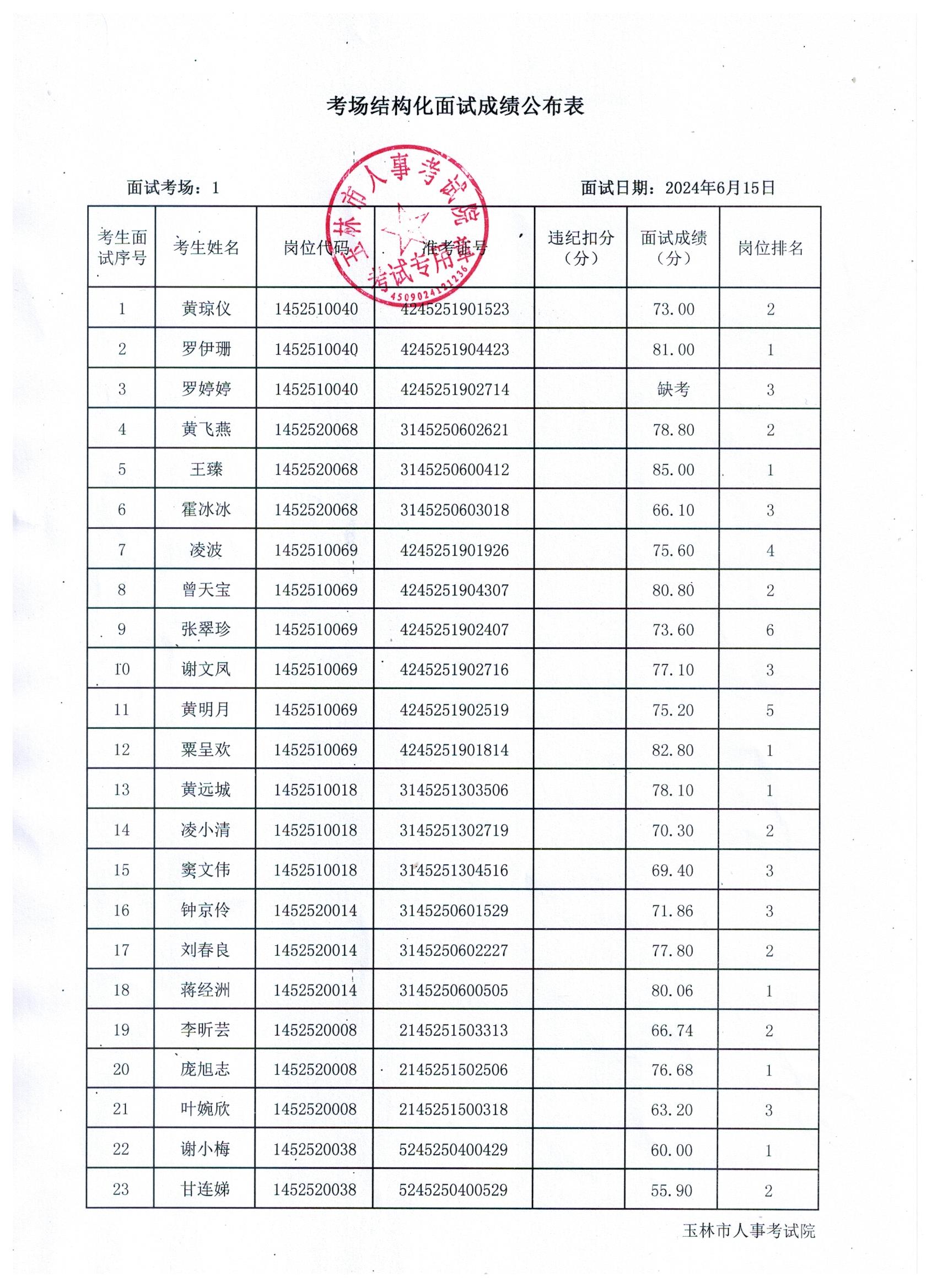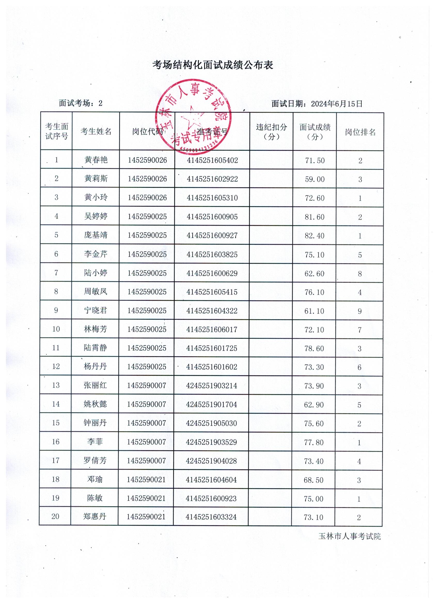 原文標(biāo)題:2024年玉林市直(含玉州區(qū)、福綿區(qū)、玉東新區(qū))事業(yè)單位公開招聘人員面試成績(jī)公布(6月15日)