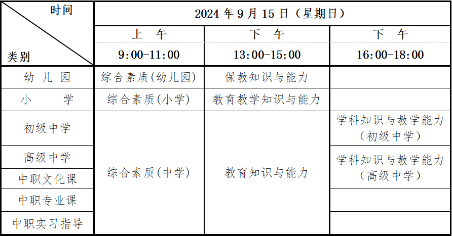 3.選擇初中、高中、中職文化課類別中“心理健康教育”“日語”“俄語”學科的考生,筆試科目三《學科知識與教學能力》暫不考試,結(jié)合面試一并考核;選擇小學類別中“心理健康教育”“信息技術(shù)”“小學全科”的考生,筆試科目為《綜合素質(zhì)》(代碼:201)和《教育教學知識與能力》(代碼:202)。